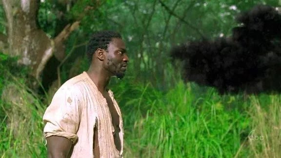 They come upon a body from the plane; it’s one of Eko’s fellow gangsters, disguised as a priest. Charlie pretends to be unsure of where the plane is. Suddenly agitated, Eko insists Charlie climb a nearby tree—ostensibly so Charlie can see if he can get his bearings … but watch it and tell me if you don’t see that Akinnuoye-Agbaje is playing it as if Eko senses something is coming.