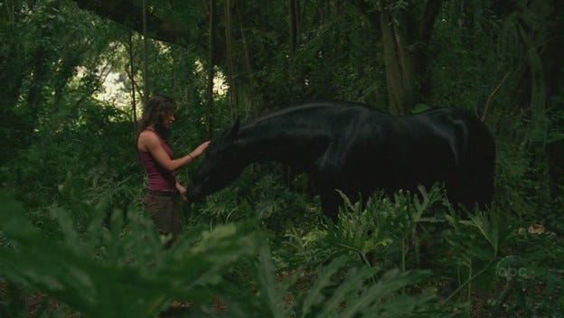 Sawyer eventually recovers, Kate leads him out of the Swan into the jungle where they see the horse, and Kate … look, this is weird, but she makes peace with the horse. I’m not here to tell you every part of this show works.