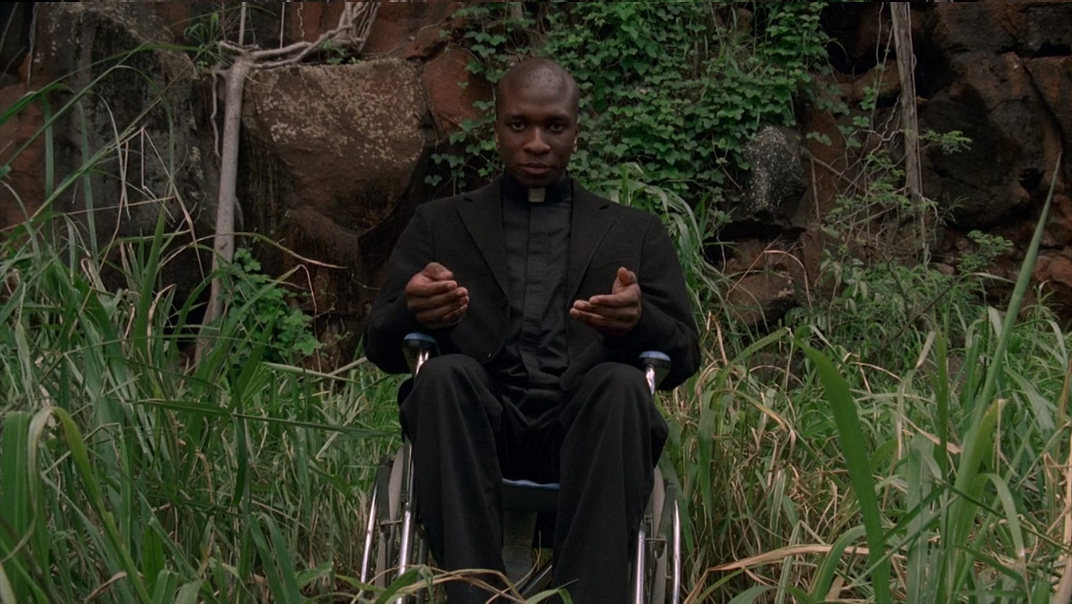 This brings them to the spot where the Beechcraft carrying Yemi’s remains fell and Boone died. In a wonderfully disorienting move, Locke has a dream that he is Eko3, compelled by Yemi to climb to the top of the cliff where the Beechcraft had been perched. When “Eko” reaches the top, Yemi is there, sitting in Locke’s wheelchair, and he kicks Eko off the cliff. Upon waking, Locke relays his dream to Eko, who climbs for real (the axe saves him) and, from that vantage, sees a “?” carved into the grass below.